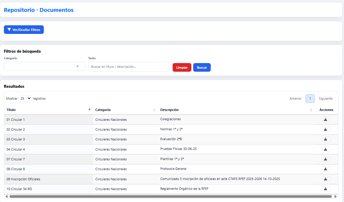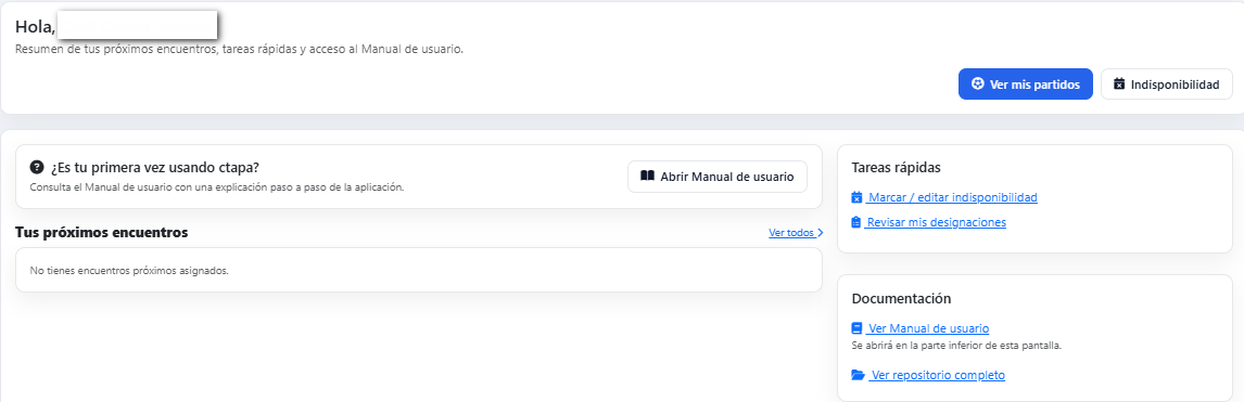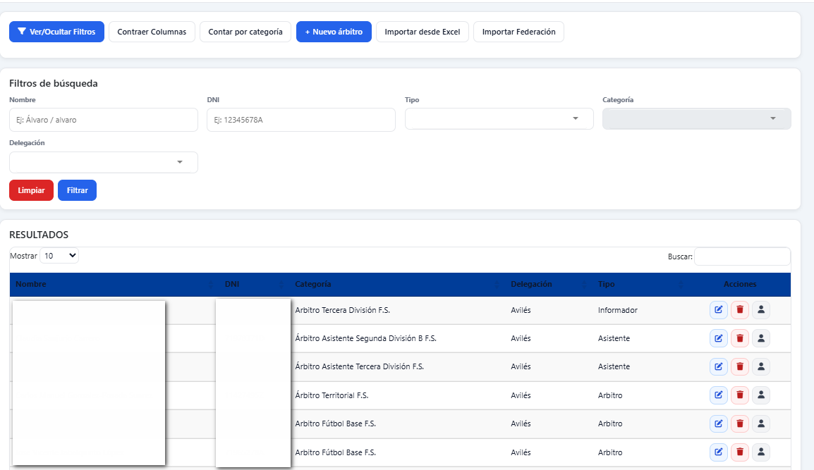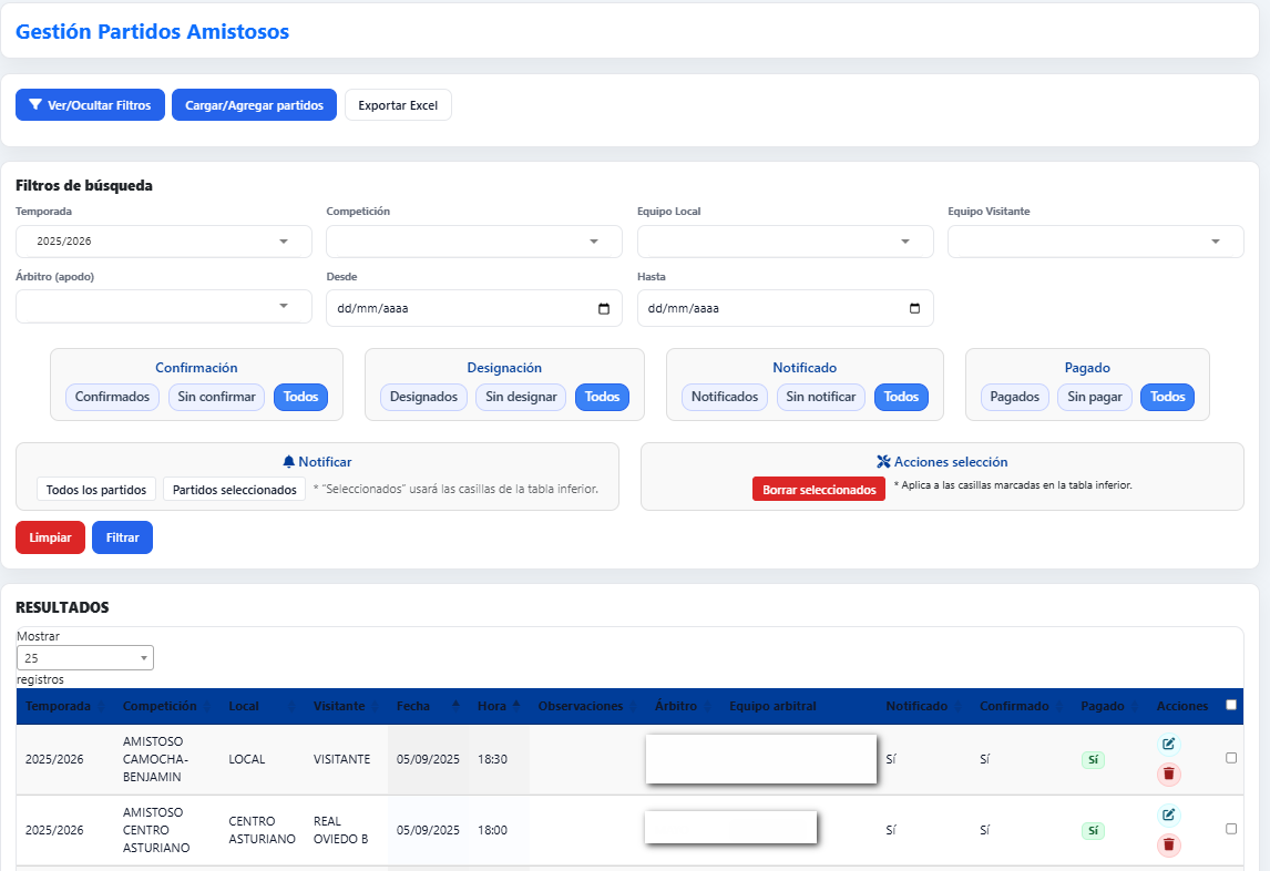 Intranet para gestionar disponibilidad, designaciones, documentos y mensajería. Válida para competiciones oficiales y no oficiales. Importa partidos desde Excel o créalos directamente.