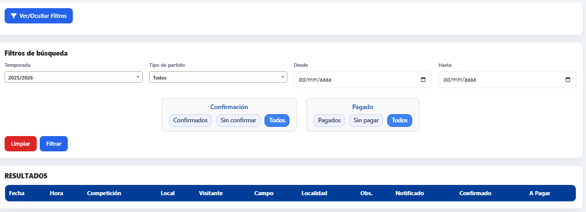 Lo determinamos en la demo según número de árbitros, volumen de partidos y estructura interna.